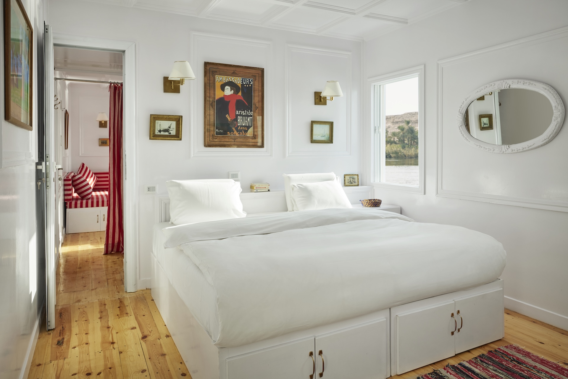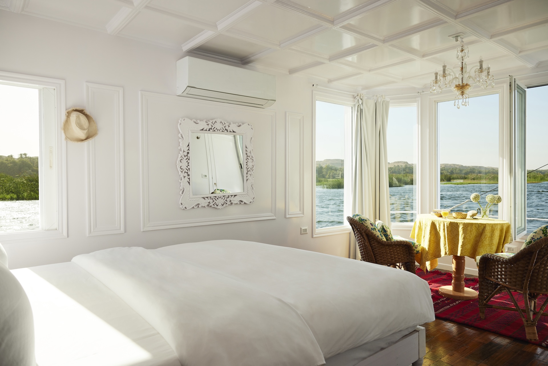 Najafa’s Panoramic Suite offers one of the most indulgent river experiences, with broad floor-to-ceiling windows and a large, elegant interior. It is a space designed for unhurried mornings and long evenings gazing out at the timeless Nile.