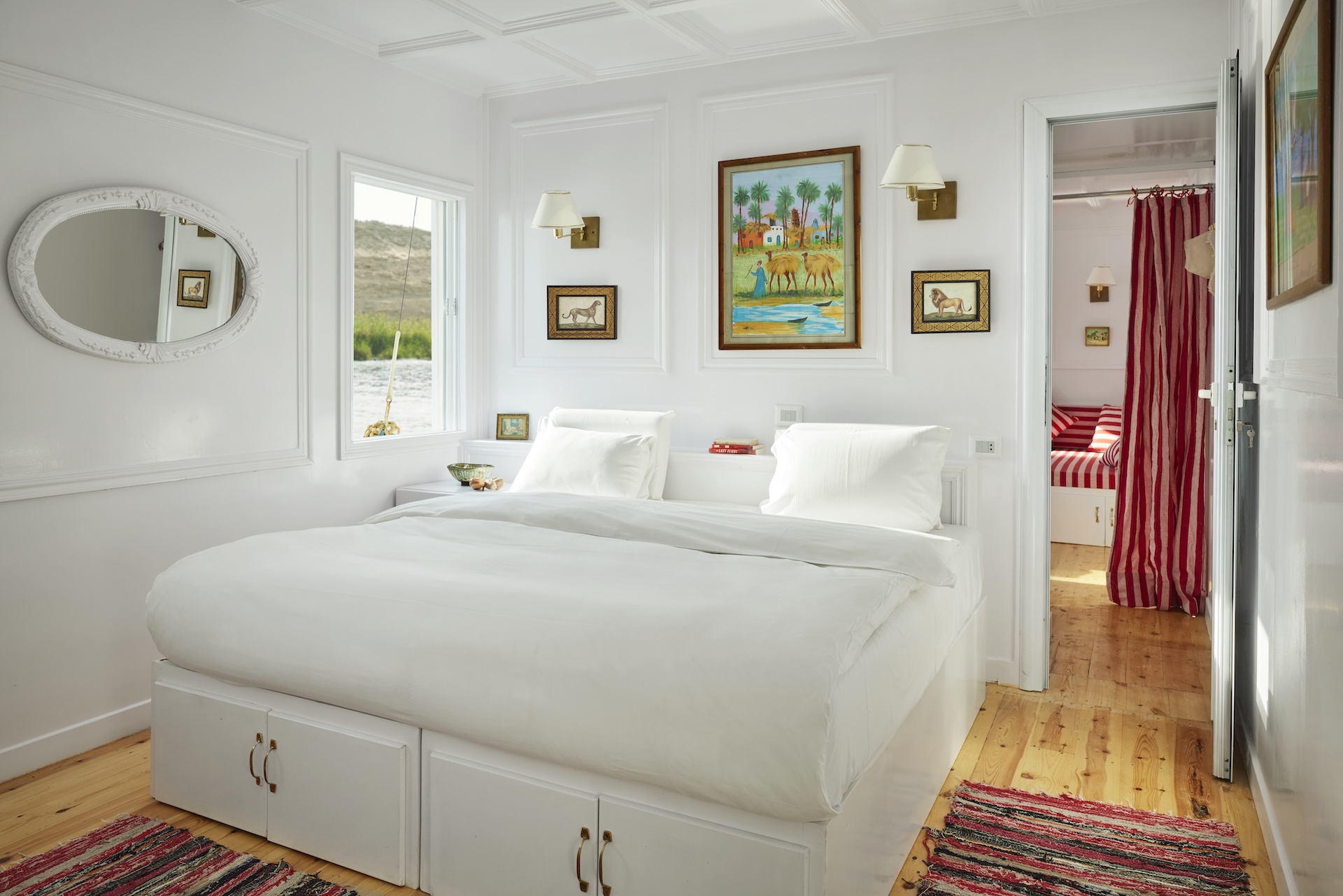 Poppee’s Deluxe Suite is a spacious, light-filled haven designed for those who want room to relax and unwind. It can be arranged as a one-bedroom suite with a graceful salon or a two-bedroom retreat, offering flexibility for families or friends. Complete with two elegant bathrooms and sweeping views of the Nile, it offers a perfect blend of romance, comfort, and understated luxury.